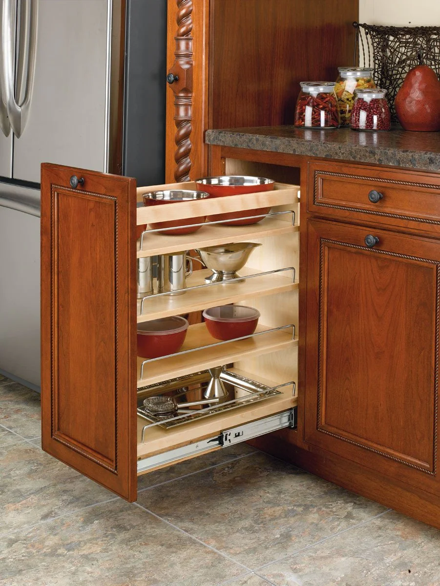 Rev-a-shelf offers innovative storage organizing accessories designed for residential stock or custom kitchen, bath or closet cabinetry.